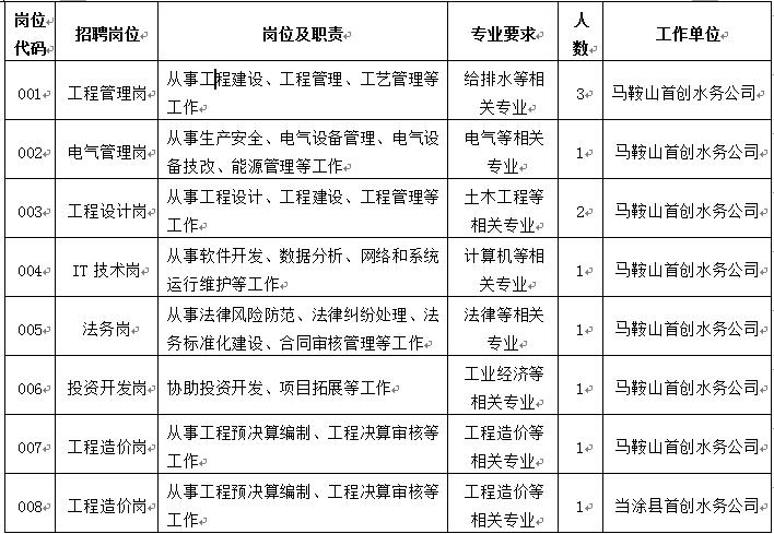 因工作需要,馬鞍山首創(chuàng)水務有限責任公司正式啟動2020年度高校畢業(yè)生招聘工作,面向安徽省內外各高等院校誠聘英才。